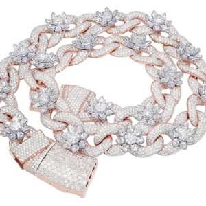 14K Mens Rose/ WhiteGold Real Diamond Cuban Mariner Necklace 20 MM 59.75 CT