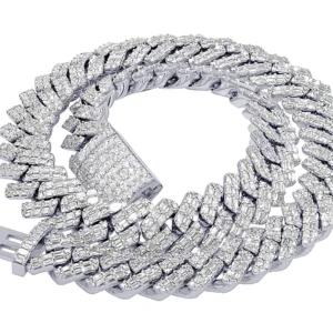 Emerald Cut VVS 74 4/5 CT Real Diamond Cuban Chain Necklace White Gold 18M…