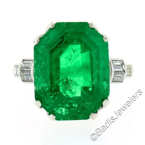 Vintage Platinum 12.16ct AGL Emerald Cut Colombian Emerald Diamond Cocktail Ring