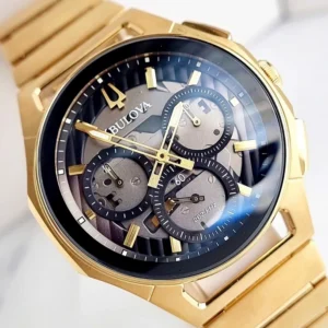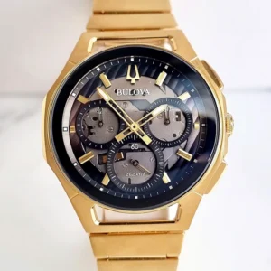 Bulova Curv Black Dial Bracelet Gold Tone Sapphire Crystal Men’s Watch 97A144