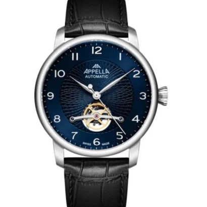 The APPELLA men’s automatic watch (Ref. L70010.5225A) embodies a harmonious fusion of Swiss mechanical craftsmanship and contemporary style, offering a versatile timepiece that excels in both casual and formal settings. Its stainless steel case in a sleek grey finish elegantly frames a striking blue analog dial, powered by a precise 21-jewel automatic movement that showcases the artistry of traditional watchmaking through its visible mechanics. Designed for durability and daily wear, the watch features a scratch-resistant mineral crystal and a robust 50-meter water resistance, while the genuine leather strap ensures lasting comfort and a refined aesthetic. Complete with full original packaging and backed by a two-year manufacturer’s warranty, this watch represents exceptional value, delivering reliable performance, enduring elegance, and sophisticated versatility.