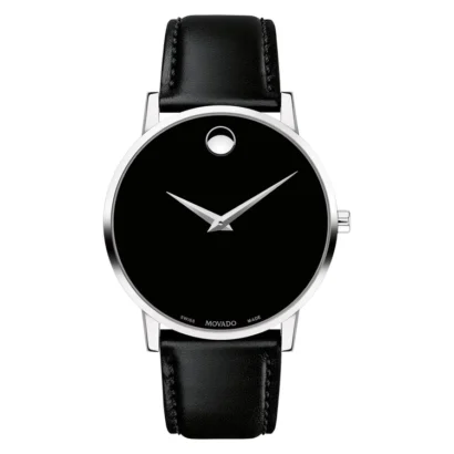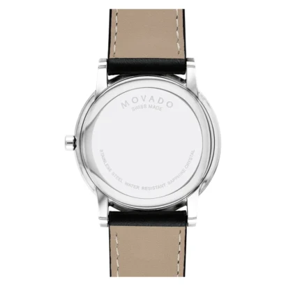 The Movado Museum 0607269 is a refined men’s wristwatch that blends timeless elegance with Swiss craftsmanship. Featuring a 40 mm stainless steel case in silver with a slim 7 mm profile, this watch is designed for comfort and sophistication. The iconic white dial with logo pattern and round indexes is protected by a durable sapphire crystal, while the Swiss quartz movement ensures reliable accuracy. Paired with a classic black leather strap and secure buckle closure, this model embodies luxury and minimalism. Water-resistant up to 30 meters, it is perfect for both daily wear and formal occasions, making it a versatile piece in any collection.