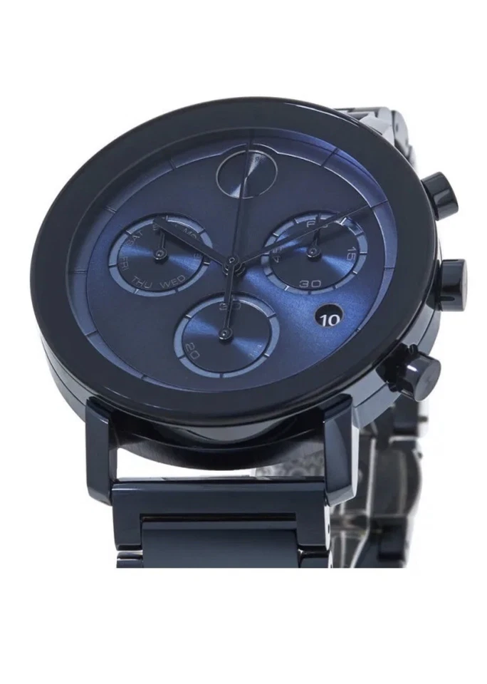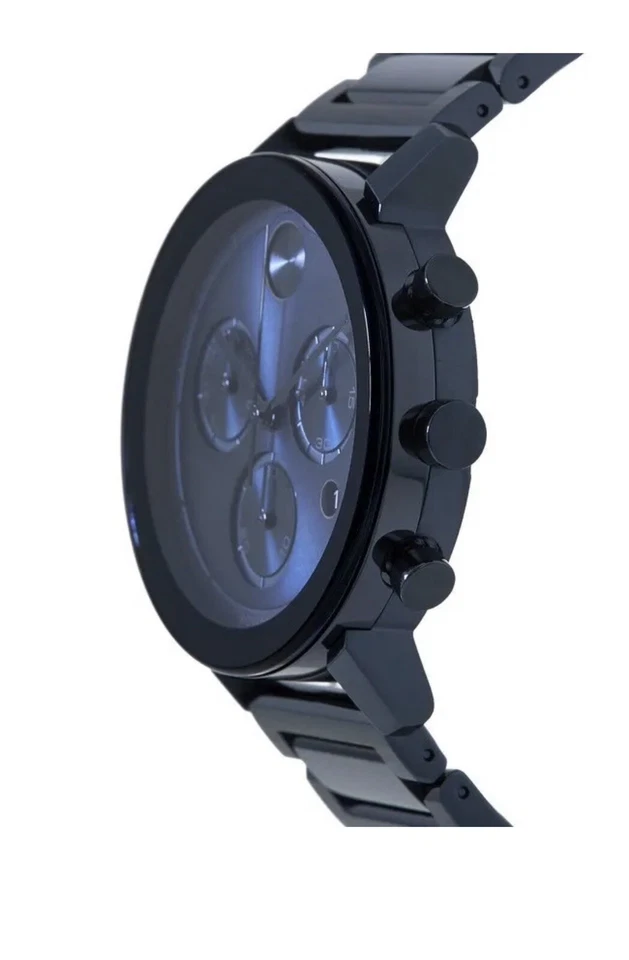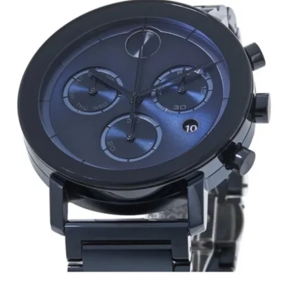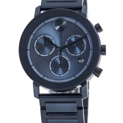 The Movado BOLD Evolution is a stylish men’s wristwatch that combines modern design with Swiss precision. Featuring a polished blue stainless steel case and matching bracelet, this timepiece exudes sophistication and contemporary appeal. The blue dial with stick indexes offers clear readability and includes a date indicator, chronograph functionality, and scratch-resistant protection. Powered by a reliable Swiss quartz movement and water-resistant up to 30 meters, it is perfect for daily wear or formal occasions. Designed for men who value both style and quality, the Movado BOLD Evolution comes complete with its original box and manual, making it a premium addition to any collection.