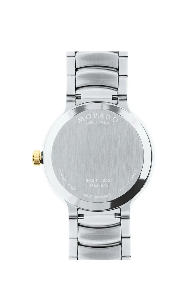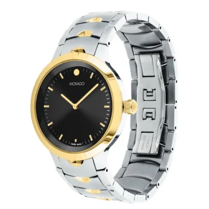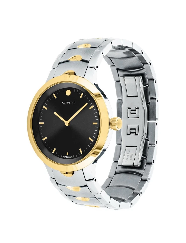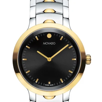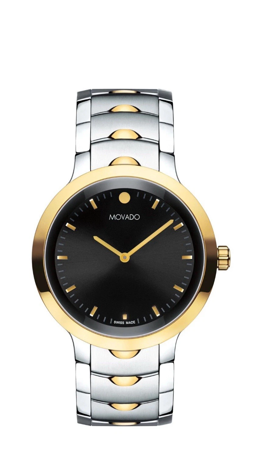 The Movado Stellar Men’s Two-Tone 40mm Watch is a striking blend of elegance and Swiss precision. Featuring a 40 mm stainless steel case with a sophisticated two-tone finish, it pairs a black dial with gold-tone accents for a classic, luxurious look. The watch operates on a reliable quartz movement, offering accurate timekeeping, and is water-resistant up to 30 m (3 ATM). Baton indexes enhance readability while maintaining a sleek, minimalist style. Designed for formal and luxury occasions, this watch comes brand new with original box, papers, and manual, making it an ideal choice for collectors and style-conscious gentlemen.
