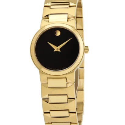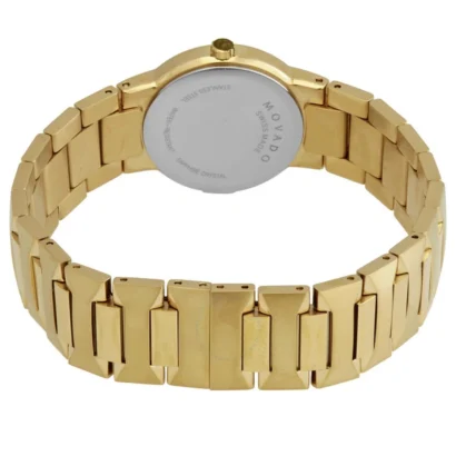 Add a touch of timeless elegance to your ensemble with the Movado Temo women’s wristwatch. Crafted with a polished gold-tone stainless steel case and bracelet, this Swiss-made timepiece combines refined style with enduring performance. The minimalist black dial, free of hour markers, complements the sleek, modern design, while the durable sapphire crystal and 30-meter water resistance ensure practicality in everyday wear. With its reliable quartz movement, scratch-resistant finish, and luxury appeal, the Movado Temo is perfect for both casual and formal occasions.