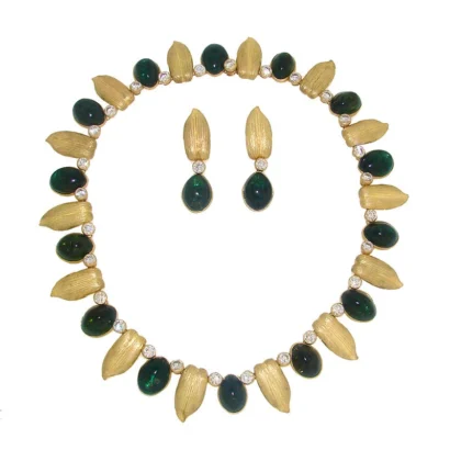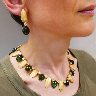 MARIO BUCCELLATI 18 karat Gold Green Tourmaline Diamond Necklace & Earrings Set