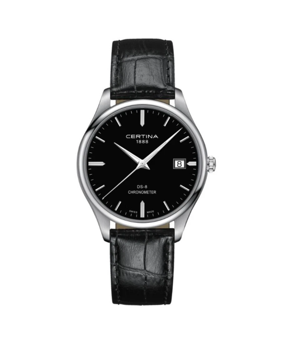 The Certina C033.451.16.051.00 is a men’s wristwatch that combines classic style with modern functionality. Its 40.2 mm stainless steel case with a steel-colored finish houses a sleek black analog dial, enhanced with luminous Neo-hands and Neo-display for excellent readability in low light. Powered by a precise quartz movement with 21 jewels, this watch ensures reliable timekeeping for daily wear. The black leather strap adds sophistication and comfort, while a stainless steel back and 100 m (10 BAR) water resistance provide durability and resilience