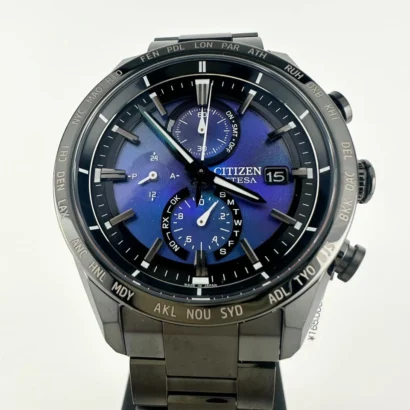 The Citizen ATTESA AT8285-68Z is a stylish men’s wristwatch designed for casual and sporty lifestyles. Featuring a 42 mm round super titanium case with a striking purple bezel and burgundy dial, this watch combines durability with elegance. The Baton index markers and right-handed design enhance readability, while the super titanium bracelet with 21 mm width ensures a comfortable fit. Powered by solar quartz movement, it offers precision and reliability and is water-resistant up to 100 meters (10 ATM). Complete with original box and manual, this timepiece is perfect for daily wear or active adventures.