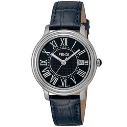 Experience timeless sophistication with the Fendi Classico Men’s Watch, a perfect fusion of elegance and precision. Featuring a polished silver stainless steel case paired with a luxurious blue leather two-piece strap, this 38mm round timepiece exudes classic charm. The black dial is accentuated with Roman numeral indexes for a refined look, while the scratch-resistant sapphire crystal ensures durability. Powered by a reliable Swiss quartz movement, it offers a 12-hour dial, date indicator, magnetic resistance, and water resistance up to 30 meters. Designed with a fixed bezel, screwback case, and buckle closure, this watch is ideal for adult men who appreciate classic and luxury style.