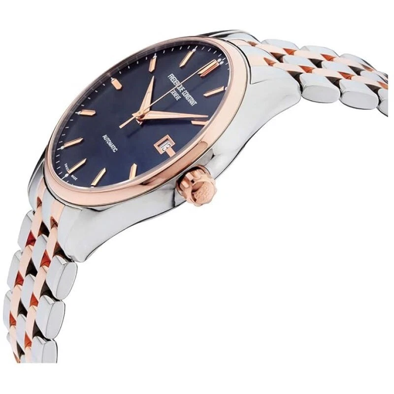 The Frederique Constant FC-303LN5B2B is a quintessential expression of accessible luxury, masterfully blending classic watchmaking elegance with modern versatility through its refined two-tone design. Its 40mm polished stainless steel case features a sleek silver bezel and seamlessly integrates a silver and gold-toned aesthetic, which elegantly frames a stunning sunray blue dial equipped with a practical date window. Powered by a precise 26-jewel Swiss automatic movement visible through the exhibition case back, this watch offers the charm of mechanical craftsmanship along with 50 meters of water resistance for everyday reliability. Paired with a sophisticated two-tone leather strap, this timepiece effortlessly bridges the gap between sporty, casual, and formal styles, making it a distinguished choice for any occasion.