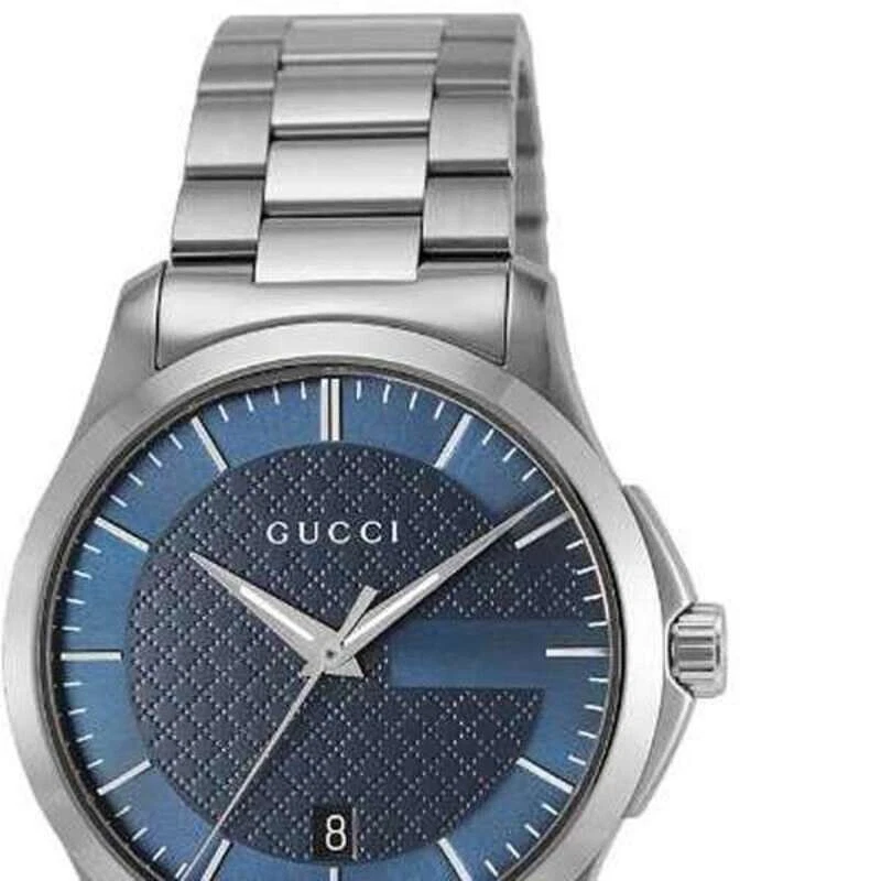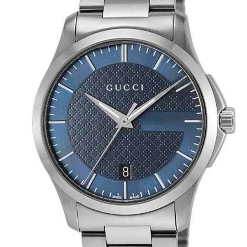 The Gucci G-Timeless YA126440 men’s wristwatch blends classic elegance with modern sophistication. Featuring Swiss quartz movement, a striking blue dial with baton indexes, and luminous hands and markers, this timepiece ensures precision and readability. Housed in a polished 38 mm silver stainless steel case with a screwback caseback and paired with a silver stainless steel bracelet, it offers durability and refined style. With a 50-meter water resistance, date indicator, scratch-resistant finish, and original packaging with manual included, this watch is perfect for casual, classic, and dress/formal occasions.