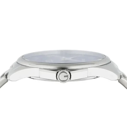 The Gucci Men’s G-Timeless YA126371 Stainless Steel Watch is a luxurious timepiece that combines classic design with the elegance of modern Swiss craftsmanship. Featuring a 40 mm round stainless steel case in a polished silver tone, this watch offers a sleek and versatile style that can easily transition from casual to formal settings. The blue dial with the iconic Gucci logo pattern creates a sophisticated look, complemented by baton and stick indexes for a refined display. The watch is powered by a Swiss-made quartz movement, ensuring precise timekeeping. With sapphire crystal for scratch resistance, shock resistance, and 50 m (5 ATM) water resistance, this timepiece is durable enough for everyday wear, even in light water exposure. The stainless steel bracelet adds to the luxury feel, and the screwback case enhances the watch’s sturdiness. The watch is delivered with its original box, papers, and a seller warranty, making it a perfect choice for those who appreciate Swiss quality, elegance, and functionality.