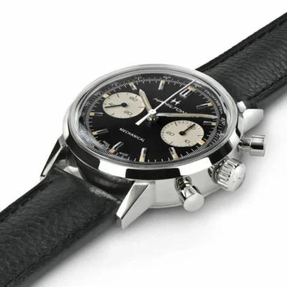 The Hamilton H38429730 is a sophisticated men’s wristwatch that combines classic elegance with modern functionality. Featuring a 40 mm polished stainless steel case with a round shape and black leather two-piece strap, this timepiece exudes refinement for casual, classic, formal, and sporty occasions. The black dial boasts multi-dial layout, luminous hands, multiple hands, and non-numeric hour markers, ensuring precision and readability. Powered by a mechanical manual movement with a 60-hour power reserve, it also includes a tachymeter, chronograph, date indicator, and sapphire crystal.