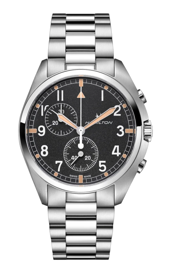The Hamilton H76522131 is a refined Swiss quartz chronograph that combines precision with timeless design. Featuring a sturdy 41mm round stainless steel case and matching bracelet, this watch offers durability with a sleek silver finish. Its sapphire crystal ensures scratch resistance, while luminous hands and markers provide clear readability in any light. With a 30-minute and 60-second chronograph, screwback case, and the reliability of high-quality 316L stainless steel, it stands as a versatile choice for everyday wear.