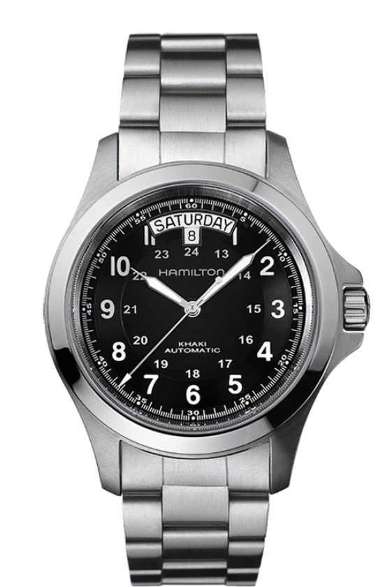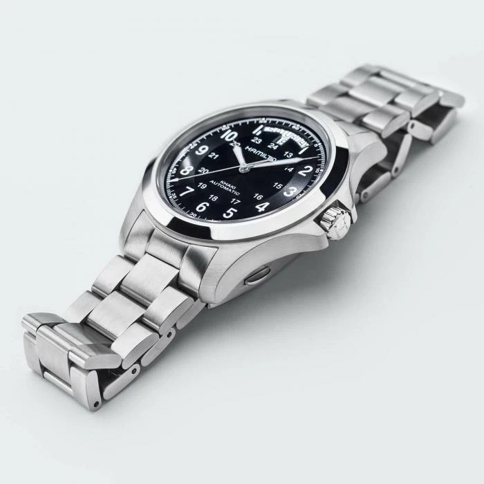 The Hamilton H64455133 men’s wristwatch blends timeless luxury with rugged adventure style, making it a perfect companion for both formal and outdoor settings. Crafted with a durable stainless steel case and bracelet, this automatic watch offers an impressive 80-hour power reserve and reliable precision. Its black dial with luminous hands, markers, and multiple hands ensures readability in any light, while the sapphire crystal and see-through case back highlight its sophisticated craftsmanship.