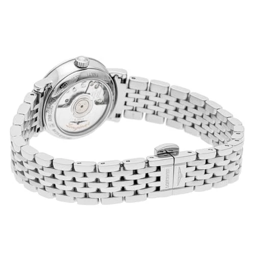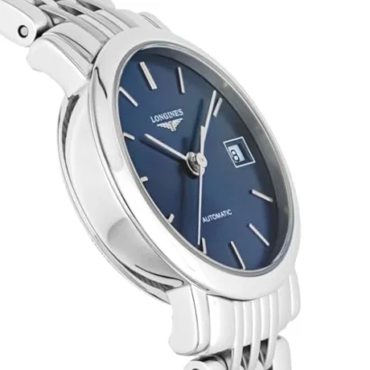 The Longines Elegant L4.309.4.92.6 is a refined women’s timepiece that lives up to its name with understated sophistication. Designed with a 25.5 mm polished stainless steel case and a sleek silver bracelet, it embodies timeless style. The deep blue dial with baton indexes offers a clean and classic look, while the automatic mechanical movement ensures precision and reliability. With its screwback case, fixed silver bezel, and 12-hour analog display, this watch balances elegance with function. Slim at just 8.5 mm thick and water-resistant to 30 m (3 ATM), it’s perfect for daily wear and formal occasions alike. Delivered with its original box and booklet, the Longines Elegant is a symbol of luxury and classic Swiss craftsmanship.