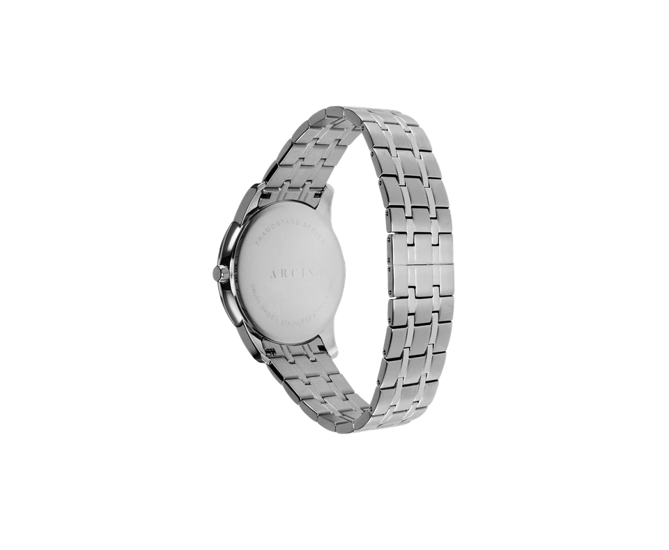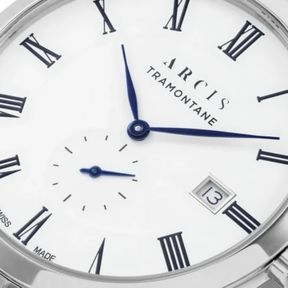 The Men’s Luxury Watch The Tramontane Stainless Steel is a stunning timepiece that blends Swiss craftsmanship with a sleek, sophisticated design. With its black stainless steel case and white dial, this watch exudes elegance. The Roman numerals on the dial add a classic touch, making it suitable for both casual and formal occasions. Powered by a chronograph movement, this watch ensures precise timekeeping and functionality. The stainless steel band adds durability and comfort, while the silver bezel provides a polished finish. Although it has a water resistance of 10m (1 ATM), it is more suited for everyday wear rather than intense water activities. The watch comes with original box, papers, and a manufacturer warranty, making it a great luxury addition to any collection.