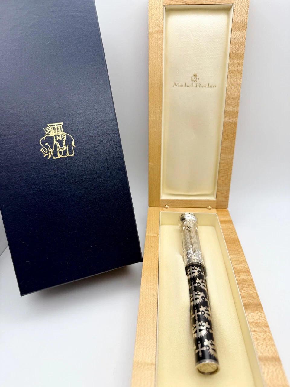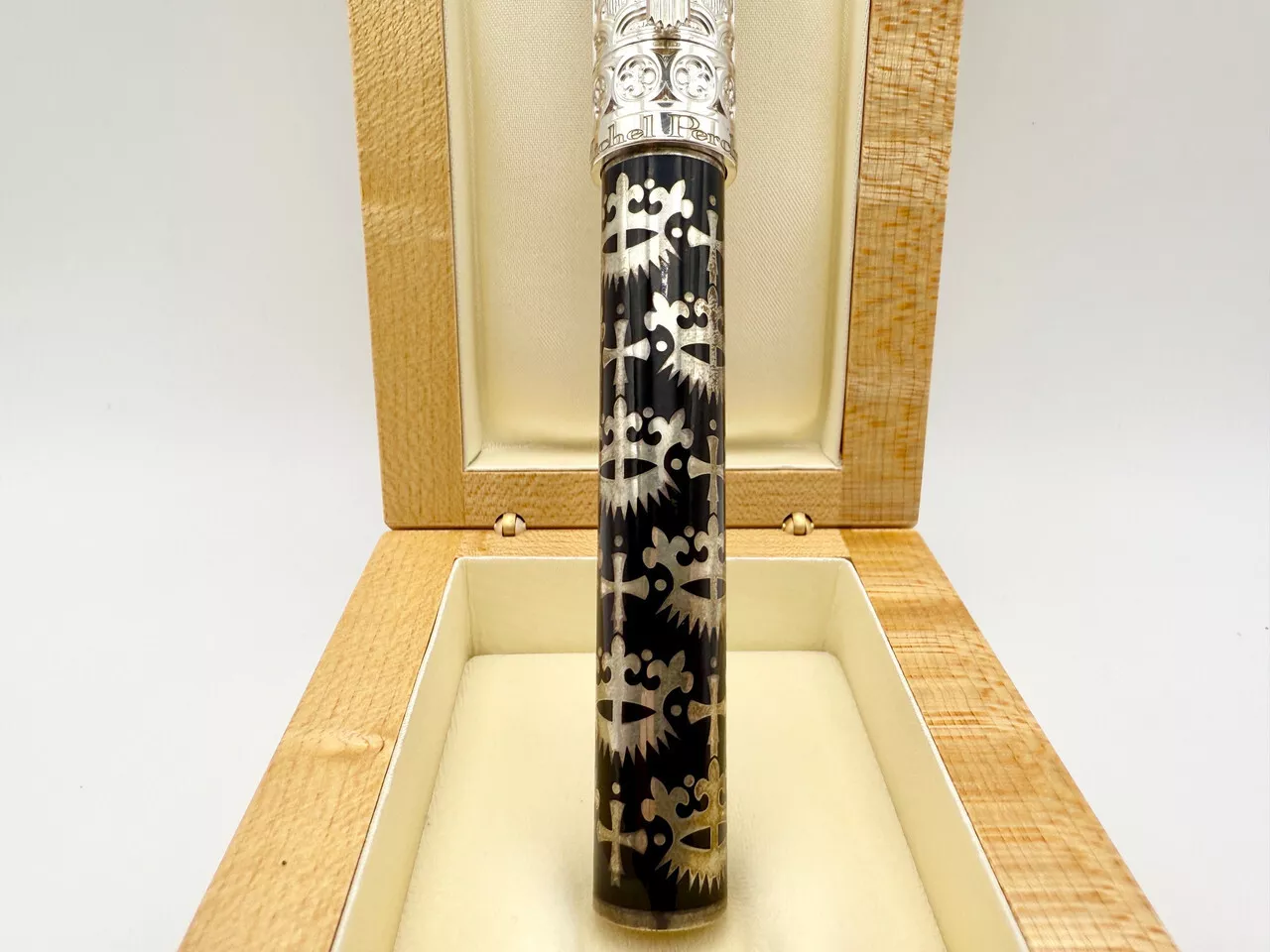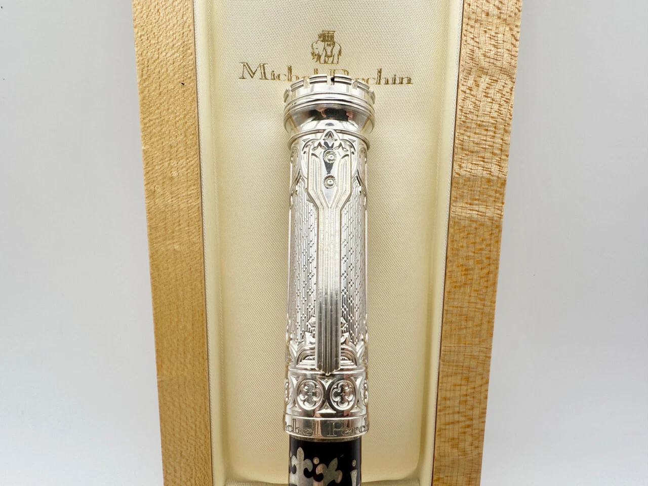 The Michel Perchin Gothic Limited Edition Sterling Fountain Pen (49/250) is a true testament to the art of fine writing, released in 2006, blending artistic craftsmanship with a unique Gothic aesthetic. This exclusive, numbered edition is limited to just 250 pieces, with this particular pen bearing the number 49, making it a rare collector’s item.