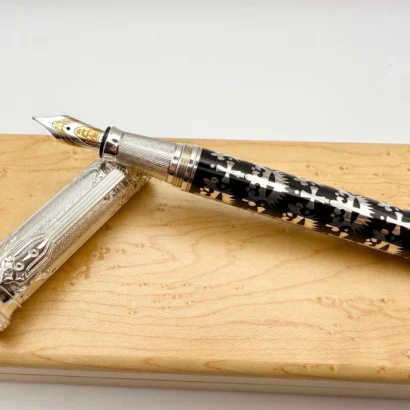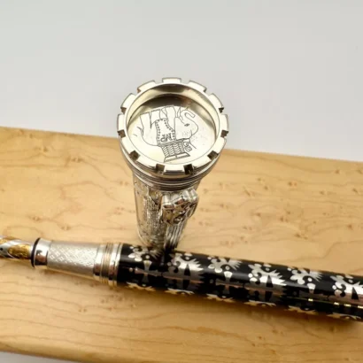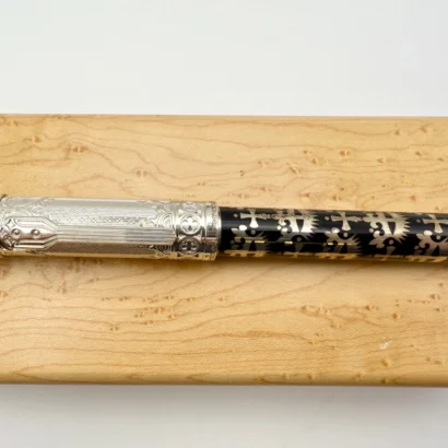 Crafted from high-quality sterling silver, the pen’s barrel is intricately engraved with a striking Gothic design, offering a bold yet elegant appearance. The detailed patterns, featuring ornate flourishes and a dark, timeless style, evoke the majesty and mystery of Gothic architecture and art. This sophisticated engraving is not only visually captivating but also adds a tactile dimension to the writing experience.