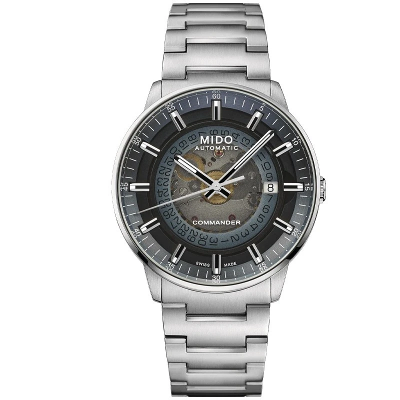 The Mido Commander Gradient 40mm (M0214071141101) is a modern Swiss automatic that turns a classic dress watch silhouette into a bold statement piece, thanks to its striking blue gradient dial with skeleton-style openness that hints at the movement beneath. The 40 mm stainless steel case and matching silver bracelet keep the look clean and versatile, making it perfect for both business and evening wear, while slim stick indexes and a minimalist layout ensure easy legibility. Protected by a sapphire crystal and rated to 50 m (5 ATM) water resistance, it’s built for real-world use, not just the display box. Driven by a reliable mechanical automatic movement and delivered with original box, booklet and papers, this Commander Gradient is an elegant choice for anyone who wants a luxury timepiece that combines timeless design with a contemporary, eye-catching dial.