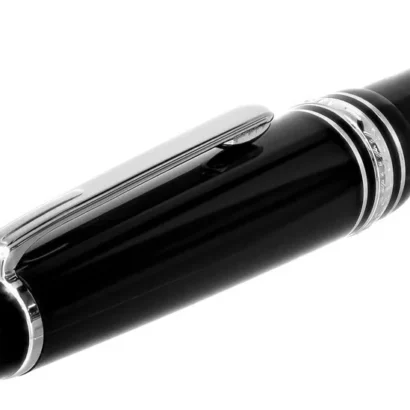 The cap and barrel are crafted in black precious resin featuring the white Montblanc emblem inlaid in the cap top.