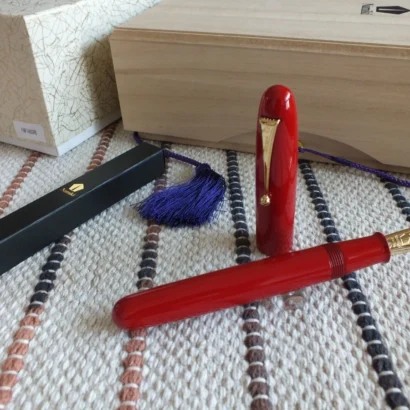 Step into the world of traditional Japanese artistry with this exquisite Urushi Maki-e fountain pen, a true symbol of refined craftsmanship. Featuring a choice of medium (M) or broad (B) nib size, and an 18K gold nib, this pen delivers flawless ink flow and smooth, expressive writing. The body, adorned with Urushi lacquer and Maki-e artwork, offers a luxurious feel and stunning visual appeal. Filled with classic black ink and finished with gold trim, this fountain pen is an exceptional blend of beauty, heritage, and performance — ideal for collectors and connoisseurs alike.