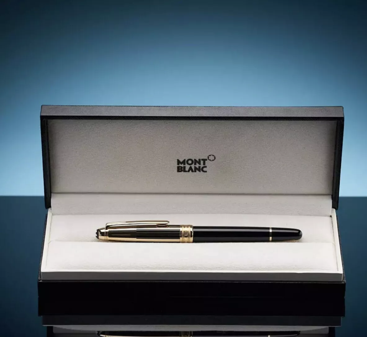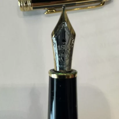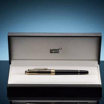 This luxurious Montblanc Fountain Pen is a statement of prestige and fine craftsmanship. Crafted from radiant gold and equipped with a fine (F) nib made of 18K gold, it offers a precise and effortlessly smooth writing experience. Filled with classic black ink, the pen delivers elegance in every stroke. With no personalization, it retains a timeless, universally appealing design—perfect for professionals, collectors, or as a distinguished gift. As always, Montblanc stands for quality, tradition, and style.