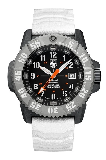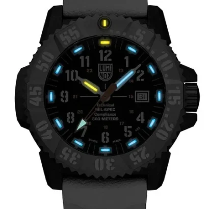 The Luminox XL.3359.SET men’s wristwatch is designed for those who demand durability, precision, and unmatched visibility in any condition. Built with a robust 46 mm CARBONOX™+ case and a screwback design, it offers exceptional strength while maintaining a lightweight feel. Its black dial features luminous hands, markers, and constant night visibility for up to 25 years, ensuring clarity day or night. Powered by a reliable ETA F06.412 movement, this Swiss-made timepiece delivers accuracy and dependability.