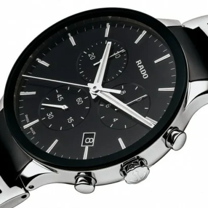 The Rado R30130152 Men’s Watch is a perfect blend of luxury, precision, and modern design. Featuring a 40 mm stainless steel case with a striking black and silver finish, this timepiece is complemented by a high-tech ceramic and stainless steel bracelet for both durability and elegance. Its Swiss quartz movement powers multiple functions, including chronograph, date indicator, luminous hands & markers, and sapphire crystal protection. With a slim 10.5 mm case thickness, solid caseback, and 50 m water resistance, it is as practical as it is stylish. Delivered in its complete original packaging with a certificate of authenticity, manual/booklet, and a 5-year manufacturer’s warranty, the R30130152 is a refined choice for men who value timeless sophistication.