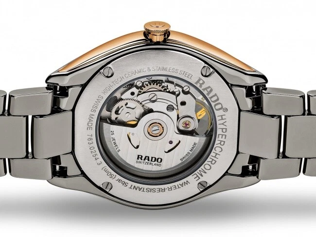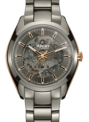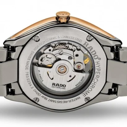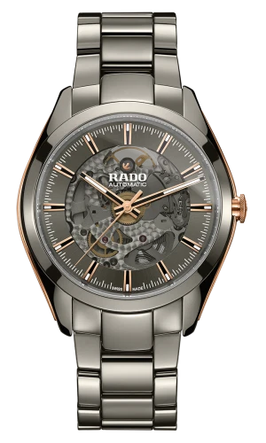 The New Rado HyperChrome Automatic Open Heart Grey Dial Men’s Watch (Ref. R32021102) is a modern luxury piece that shows off Rado’s technical elegance with a bold, contemporary twist. Its round case in plasma high-tech ceramic and stainless steel/PVD combines light weight, scratch resistance and a refined matte silver finish, while the grey open-heart dial reveals the Swiss automatic movement beneath, adding a true skeleton aesthetic without sacrificing legibility. Luminous hands and markers make the time easy to read in low light, and the sapphire crystal keeps the dial protected and clear. With an impressive power reserve of up to 80 hours, this watch will keep running even when left off the wrist for a few days. The transparent sapphire caseback further showcases the movement from the rear, and the matching plasma high-tech ceramic bracelet in silver tone completes the sleek, integrated look. Water-resistant to 50 m (5 ATM) and crafted in Switzerland, this HyperChrome is an excellent choice for men who want a statement-making open-heart watch that blends cutting-edge materials with everyday luxury, delivered complete with box, certificate of authenticity, papers and manual.