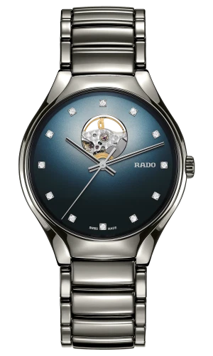 The Rado R27108732 is a luxurious men’s wristwatch that perfectly blends elegance and Swiss precision. Featuring a 40 mm round plasma high-tech ceramic case and matching bracelet, it exudes sophistication and durability. The blue dial showcases a 12-hour display with multiple hands, non-numeric hour marks, and a seconds hand, highlighted with diamond accents and protected by a sapphire crystal. Powered by a Swiss automatic movement with up to 80 hours of power reserve, it also includes a transparent sapphire case back. Water-resistant up to 50 meters, this timepiece is ideal for dress and luxury occasions. The Rado R27108732 comes complete with its original box, manual, certificate of authenticity, and a 5-year manufacturer warranty.