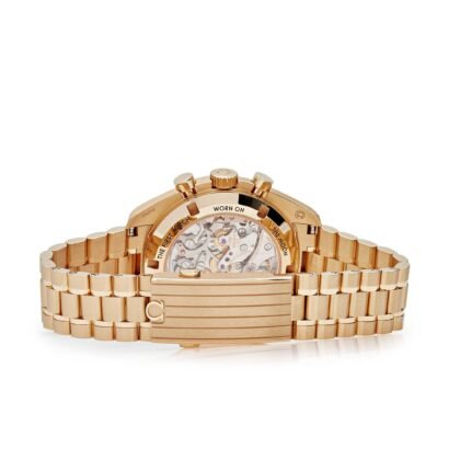 The watch is protected by a scratch-resistant sapphire crystal with anti-reflective treatment on both sides, ensuring clarity and durability. Rated at 50 meters (5 bar), suitable for everyday use and resistant to splashes and brief immersion in water. The Speedmaster Moonwatch holds a prestigious place in history, having been a part of all six moon landings, symbolizing Omega’s pioneering spirit and association with space exploration.