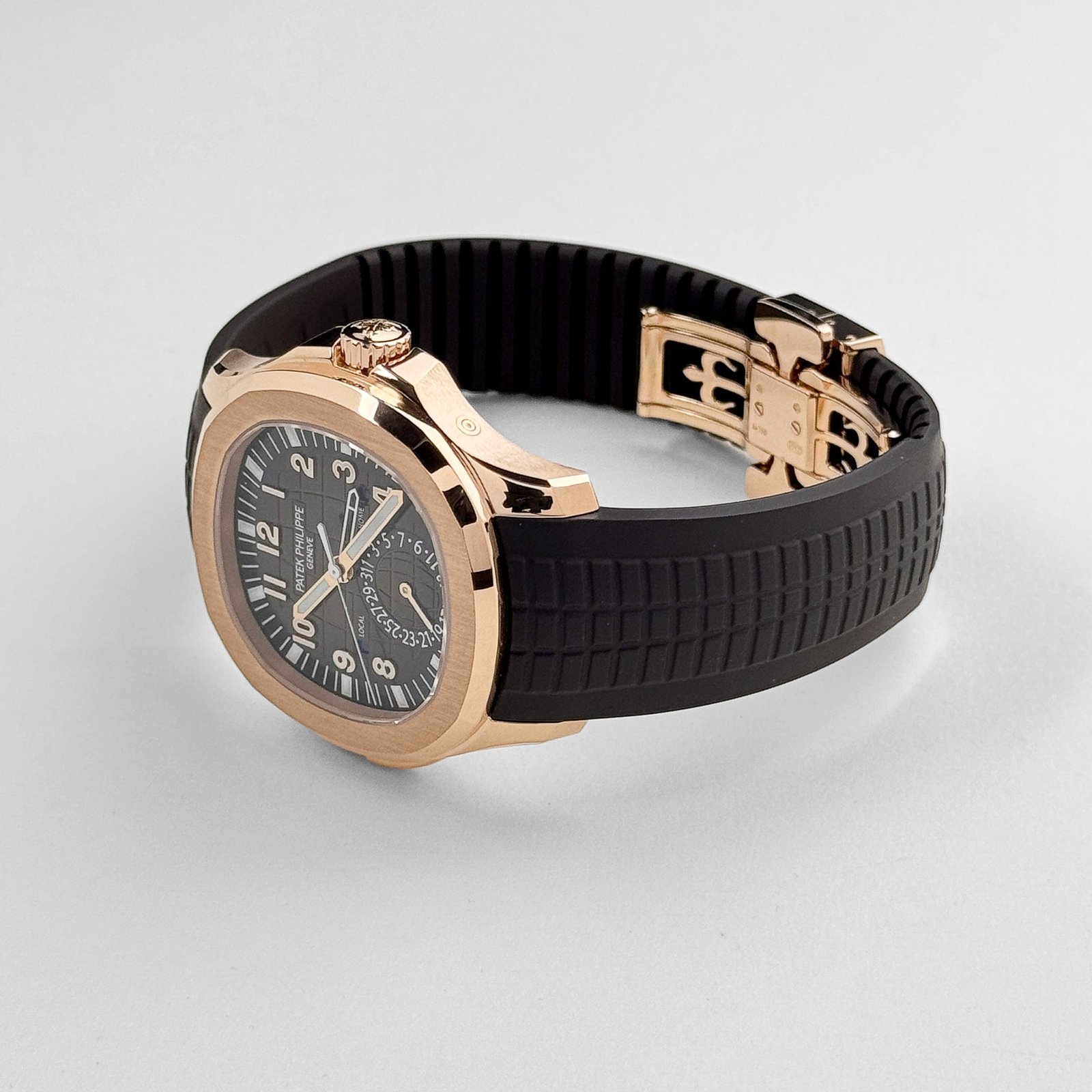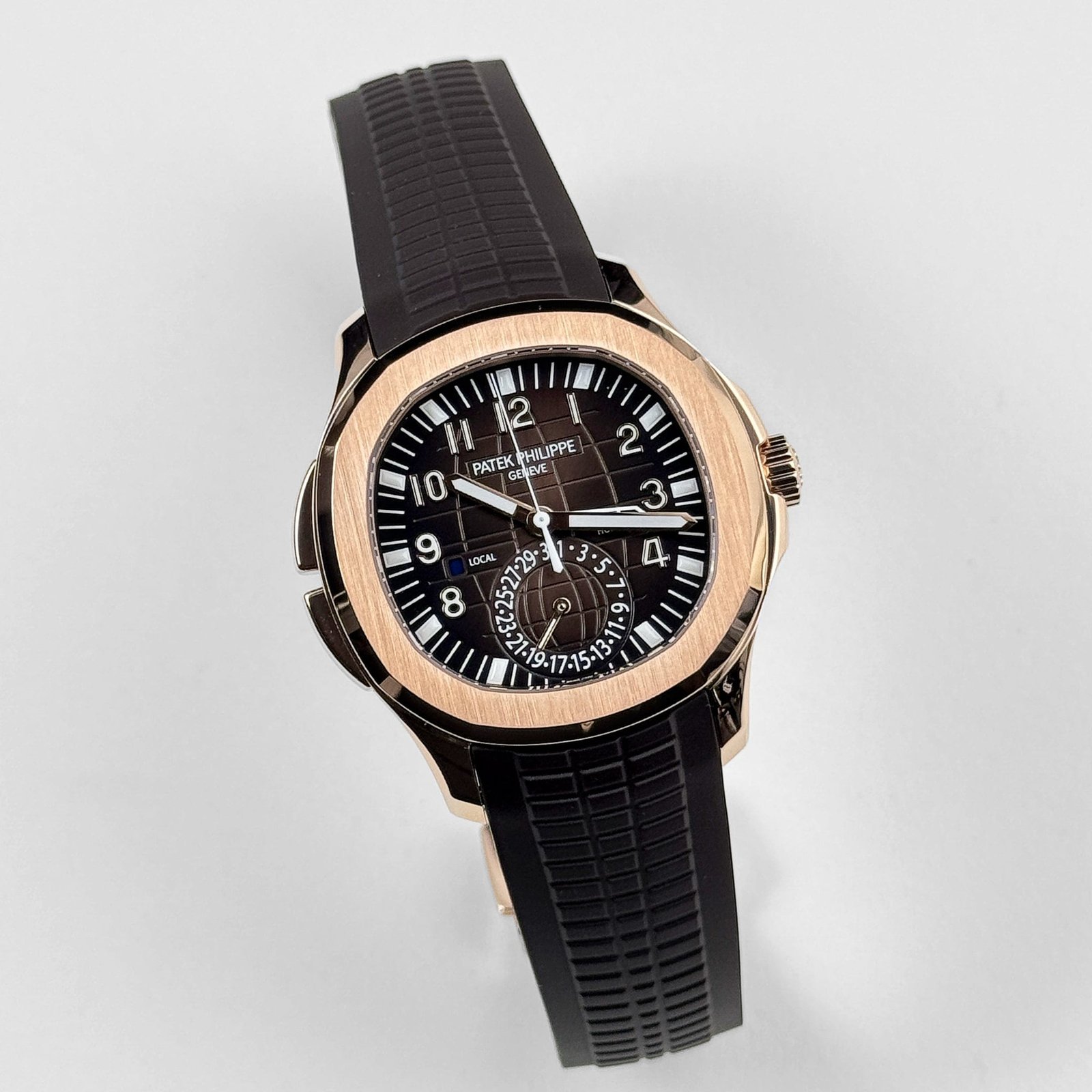 Introducing the Patek Philippe Aquanaut 5164R-001 ‘Travel Time’ Brown Dial Rose Gold, a true marvel of craftsmanship and sophistication. This timepiece embodies the perfect fusion of luxurious aesthetics, impeccable functionality, and the enduring legacy of Patek Philippe. Crafted with meticulous attention to detail, the 5164R showcases a stunning rose gold case that exudes an air of elegance and refinement. The brown dial adds a touch of warmth and character, creating a harmonious balance between opulence and versatility.