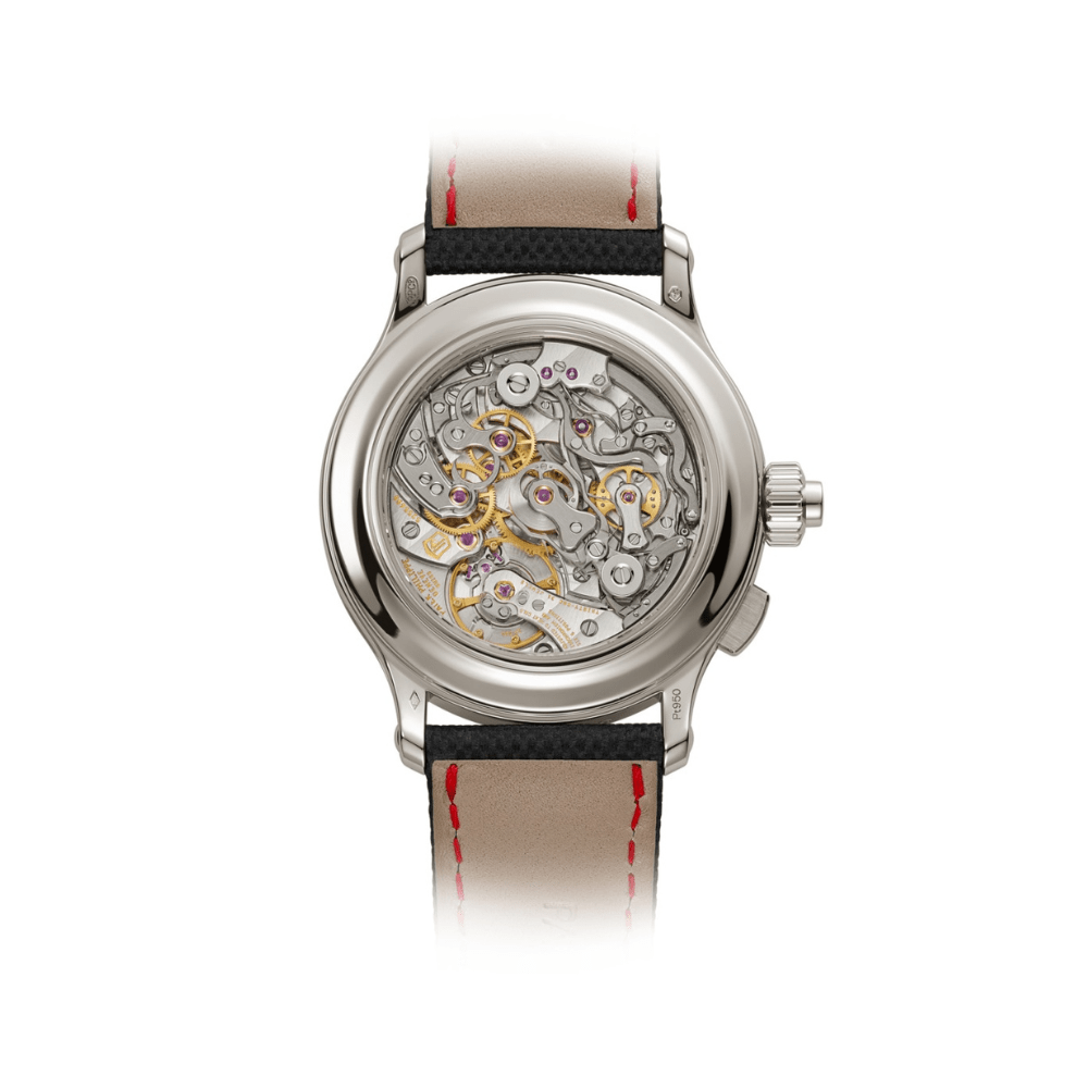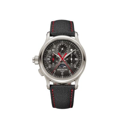 The manual-winding caliber CHR 27-525 PS Q movement drives these complications, embodying Patek Philippe’s dedication to precision and mastery. The left-handed configuration of the 5373P-001 showcases a novel approach to design. The platinum case curves around the wrist, providing unparalleled comfort and a unique visual profile. The sapphire crystal case back unveils the intricate movement, adorned with meticulous finishing that defines Patek Philippe’s standards. Presented on a black calf skin strap, the watch exudes a sense of contemporary luxury. The platinum folding clasp ensures a secure fit while complementing the overall aesthetic. Embrace the art of horological innovation with the Patek Philippe Grand Complications Split Seconds Perpetual Calendar Lefty in Platinum. This timepiece is more than just a watch; it’s a statement of your appreciation for groundbreaking craftsmanship, intricate complications, and daring design. With the 5373P-001, you’re not just wearing a watch – you’re embracing a legacy of horological excellence and avant-garde aesthetics that challenges conventions and sets new standards in watchmaking.