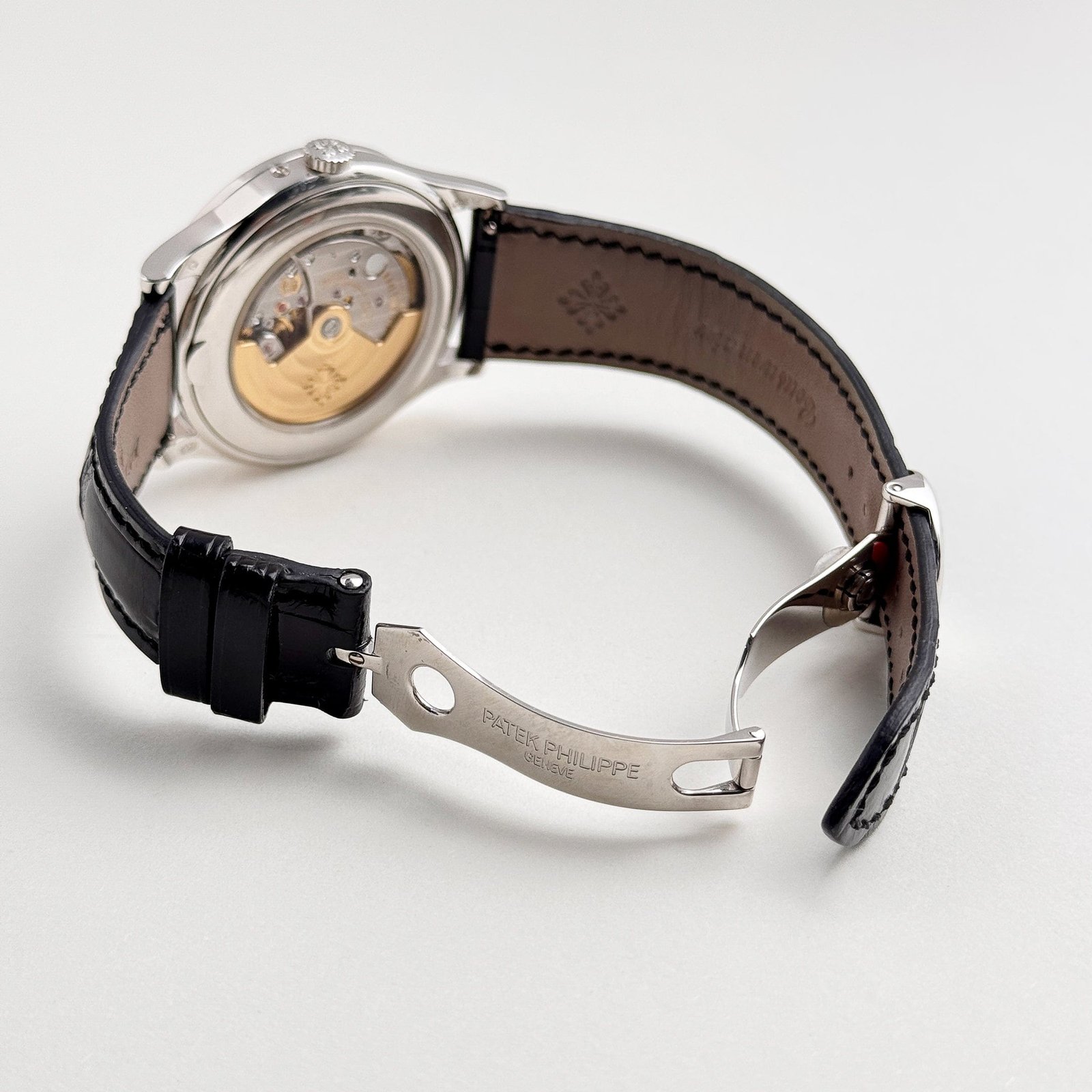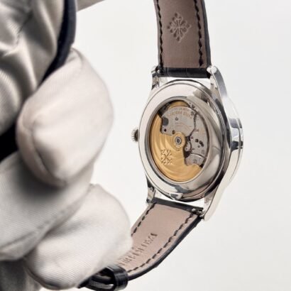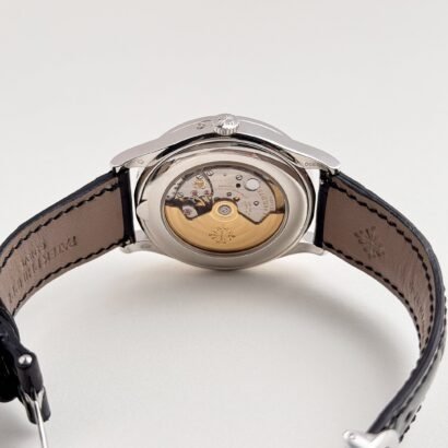 Powered by the in-house Caliber 324 S QR, this self-winding mechanical movement is a marvel of engineering, visible through the sapphire crystal case back. The movement is beautifully finished with Côtes de Genève decoration, perlage, and a solid gold rotor engraved with the Patek Philippe seal, symbolizing the brand’s commitment to superior craftsmanship and performance.