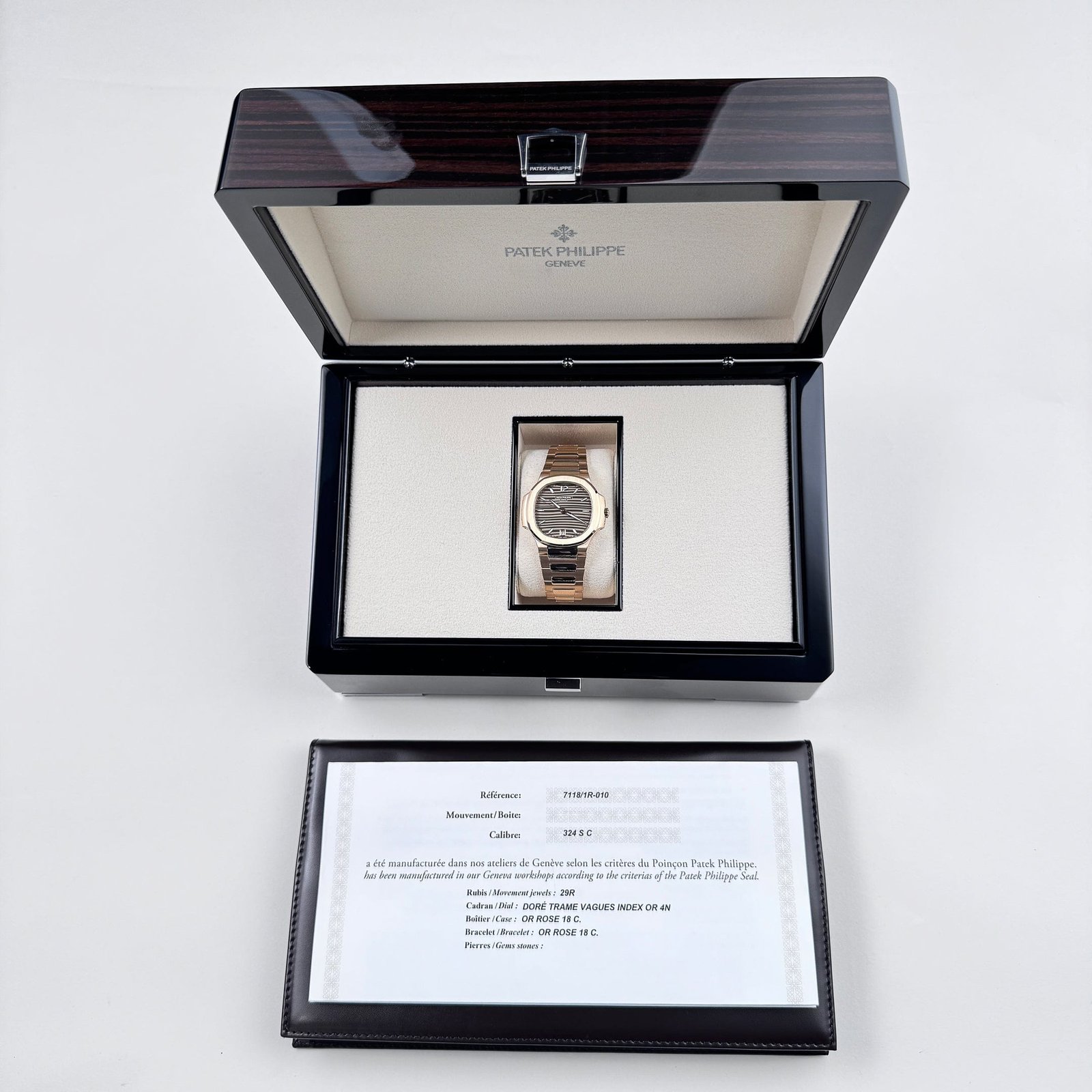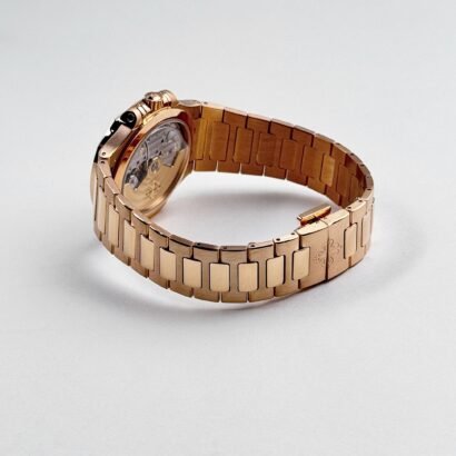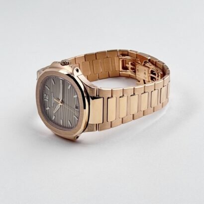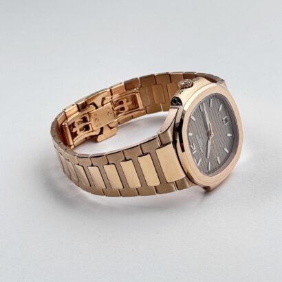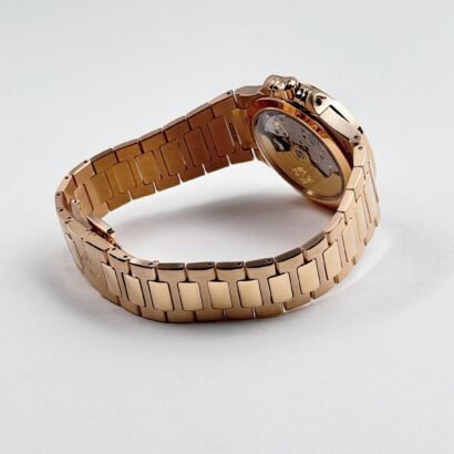 The Patek Philippe Nautilus 7118/1R-010 is a stunning embodiment of elegance and craftsmanship, designed for those who appreciate refined luxury. Crafted entirely from 18k rose gold, the 35.2mm case maintains the signature rounded octagonal bezel, offering a perfect balance of sportiness and sophistication. The integrated rose gold bracelet, with its beautifully polished and satin-brushed links, enhances the watch’s seamless and luxurious aesthetic.