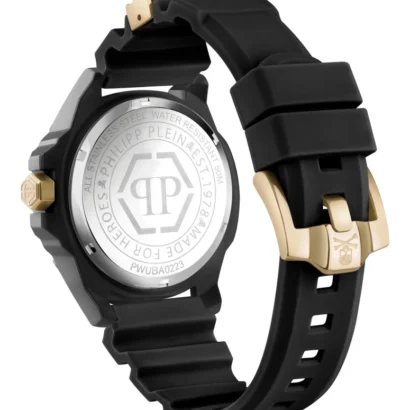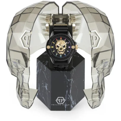 Make a bold statement with the Philipp Plein The $kull Men’s Watch, a striking blend of classic design and modern luxury. Featuring a black silicone strap and a stainless steel case with a sleek black bezel and dial, this Swiss-made 3-hand quartz watch ensures precise and reliable timekeeping. Its round 44 mm case and baton indexes provide a clean, sophisticated look suitable for casual, formal, and sporty occasions. With 50m water resistance, a buckle closure, and included manual and original packaging, this timepiece offers both durability and style, making it a perfect accessory for men who appreciate elegance and contemporary flair.