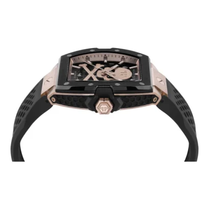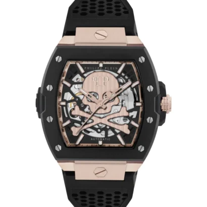 The Philipp Plein “The $keleton” is a bold and luxurious men’s wristwatch that combines sporty design with Swiss craftsmanship. Featuring a tonneau-shaped silver stainless steel case and a black silicone one-piece strap, this timepiece offers both style and comfort. The black dial with baton indexes is powered by a precise 3-hand automatic movement, reflecting Swiss-made quality and reliability. With a 44 mm case, 12.8 mm thickness, and 50-meter water resistance, it is perfect for everyday wear or formal occasions. Designed for men who appreciate luxury and versatility, the watch comes complete with its original box, manual, and a 2-year manufacturer warranty, making it a striking addition to any collection.