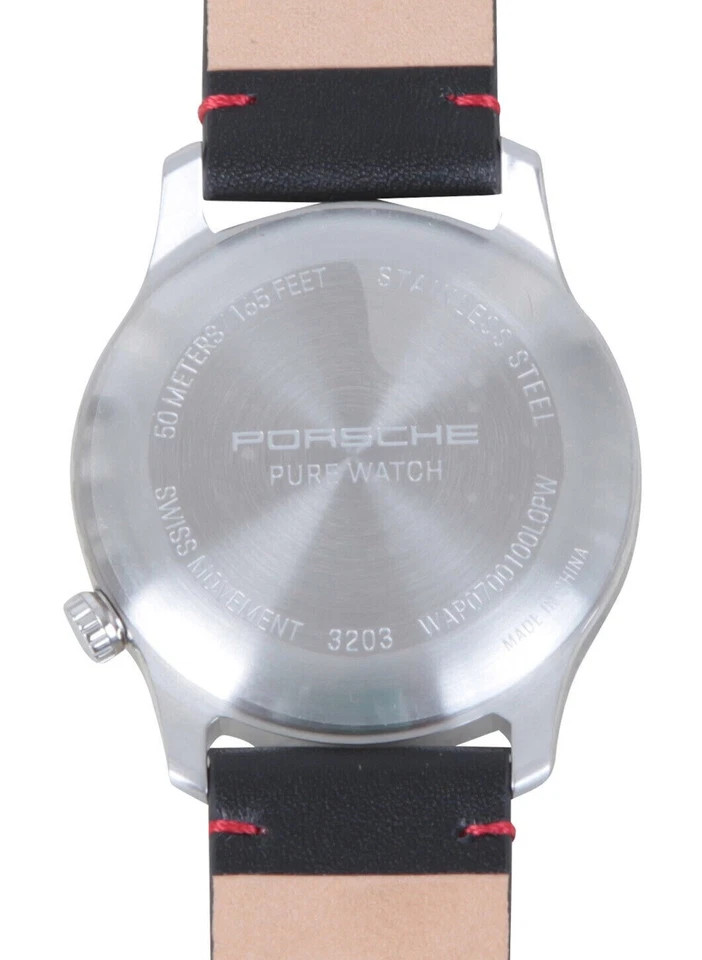 The Porsche Design Porsche Pure Watch WAP0700100L0PW is a sleek and sophisticated unisex timepiece, perfect for both casual and classic styles. Featuring a 42 mm round stainless steel case with a silver bezel and brushed finish, it pairs elegantly with a black leather two-piece strap secured by a buckle closure. Powered by Swiss Ronda quartz movement and offering 50 meters of water resistance, this watch combines precision, durability, and timeless design. Complete with original packaging, papers, and manual, it’s a refined accessory for those who appreciate luxury and functionality.