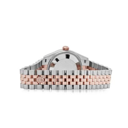 The 31mm two-toned 18k rose gold and stainless steel case strikes a perfect balance between classic and contemporary aesthetics, while the chocolate dial adds a touch of sophistication. Adorned with Roman numeral hour markers and rose gold hands, the dial exudes a sense of timeless elegance.