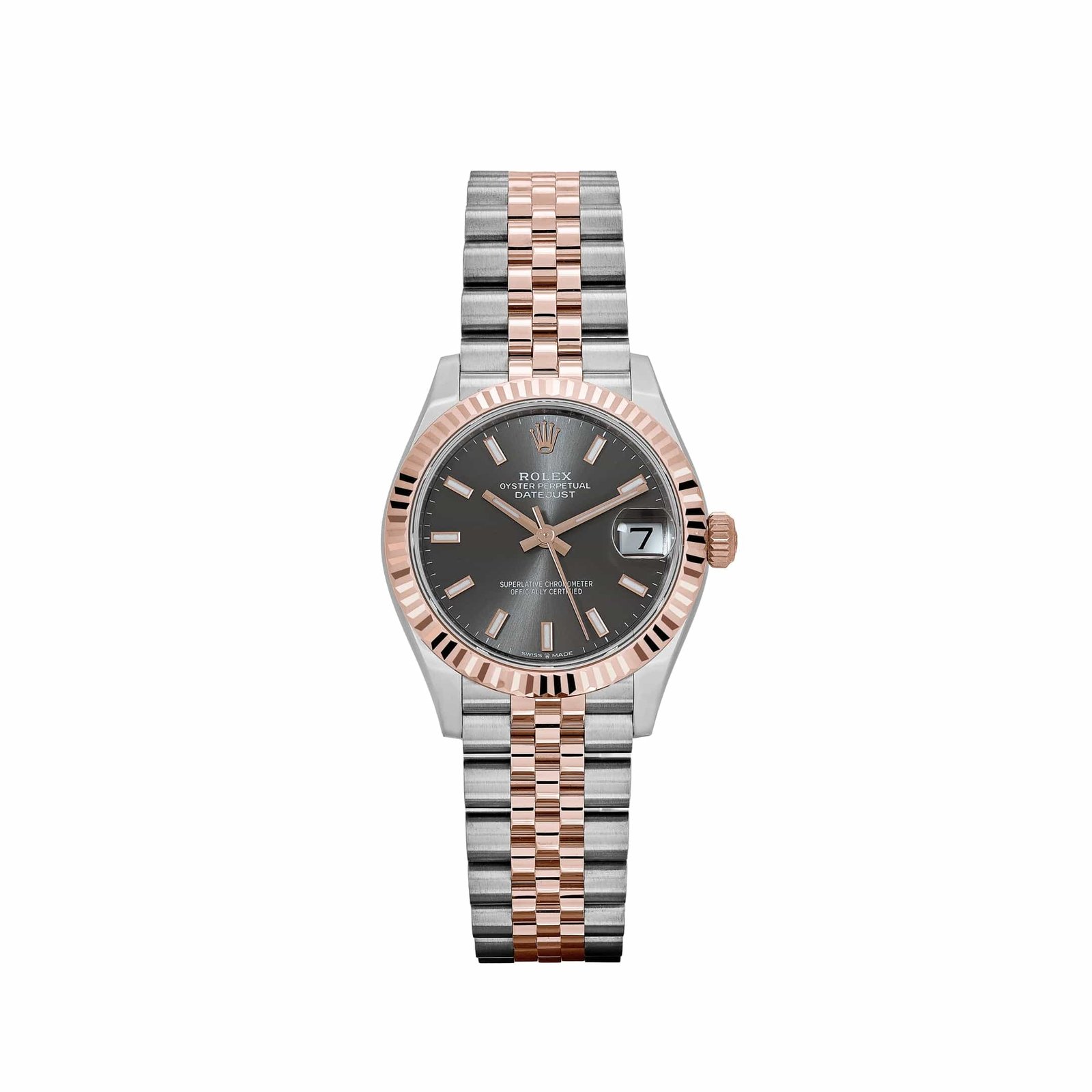 The Rolex Datejust 278271 is a graceful and timeless 31mm ladies’ timepiece, crafted in Rolesor—Rolex’s signature combination of stainless steel and 18k Everose gold. This elegant reference features a polished Everose gold fluted bezel, a slate dial, and a classic Jubilee bracelet, seamlessly blending warmth and luxury with everyday versatility.