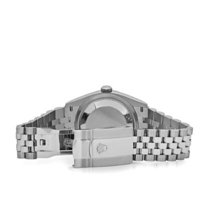 The Rolex Datejust 126234 is a refined 36mm timepiece that seamlessly blends classic elegance with contemporary appeal. Crafted in durable Oystersteel, the watch features a fluted bezel in 18k white gold, a signature element that adds a brilliant finish and timeless character to the piece. The case is paired with the five-link Jubilee bracelet, known for its comfort and polished design, secured with a concealed Crownclasp that ensures a seamless look on the wrist.