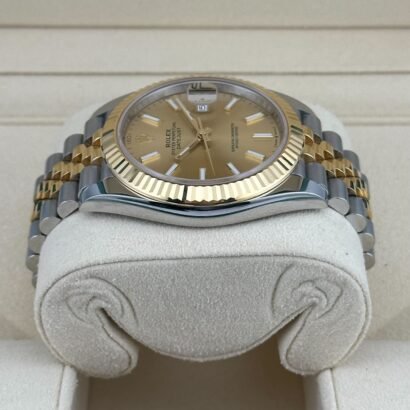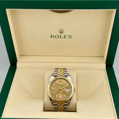Indulge in the perfect blend of elegance and versatility with the Rolex Datejust 41 Yellow Gold & Steel Champagne Dial Jubilee 126333, an exquisite timepiece that captures the essence of timeless luxury. Meticulously crafted by the esteemed Swiss watchmaker Rolex, this extraordinary watch exemplifies the brand’s legacy of precision engineering and enduring style.