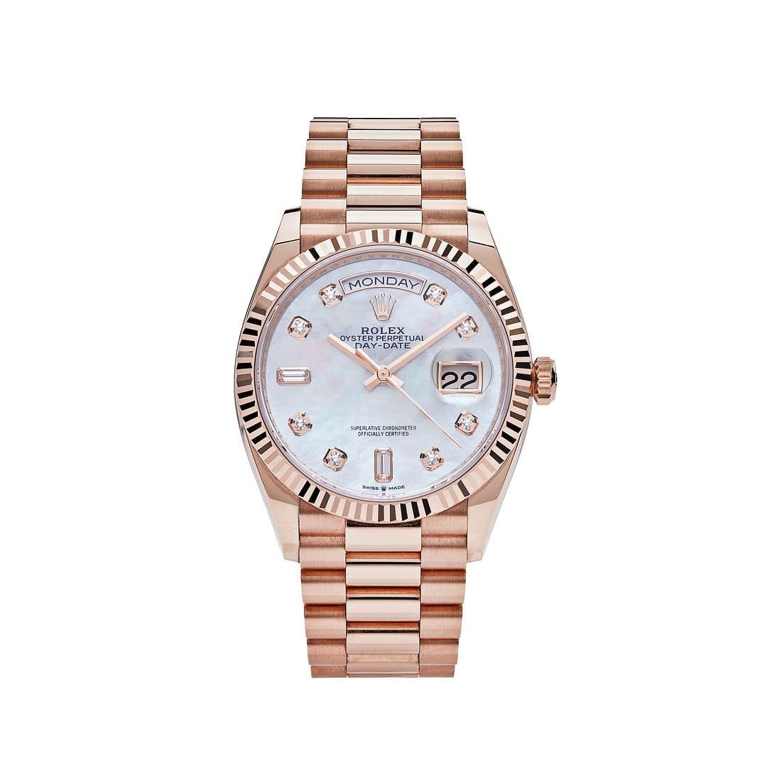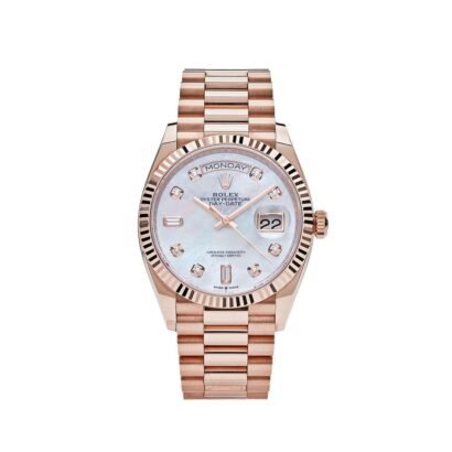 Prepare to be mesmerized by the sheer beauty and sophistication of the Rolex Day-Date 36 Rose Gold MOP Diamond Dial 128235. This extraordinary timepiece is a true reflection of Rolex’s unparalleled craftsmanship and attention to detail.