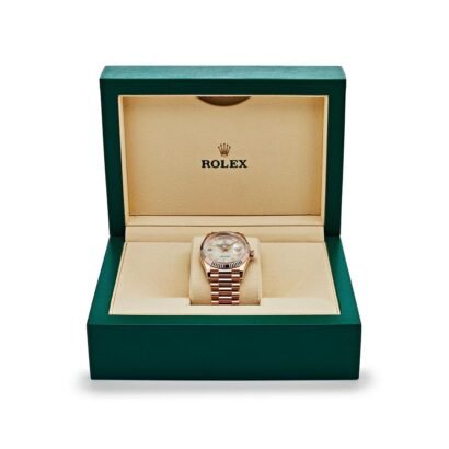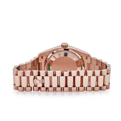 Driven by Rolex’s renowned automatic movement, the Day-Date 36 ensures exceptional accuracy and reliability, making it a trusted companion for every occasion. The President bracelet, meticulously crafted from rose gold, enhances the watch’s overall allure and offers unmatched comfort and durability.