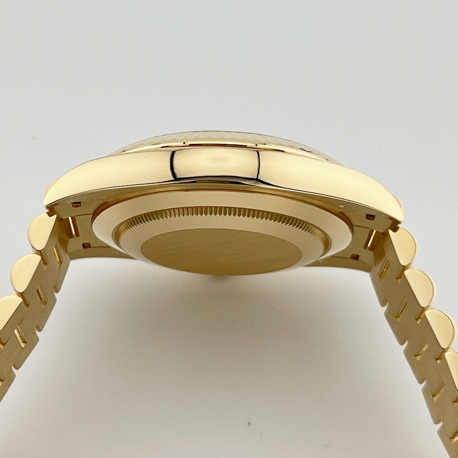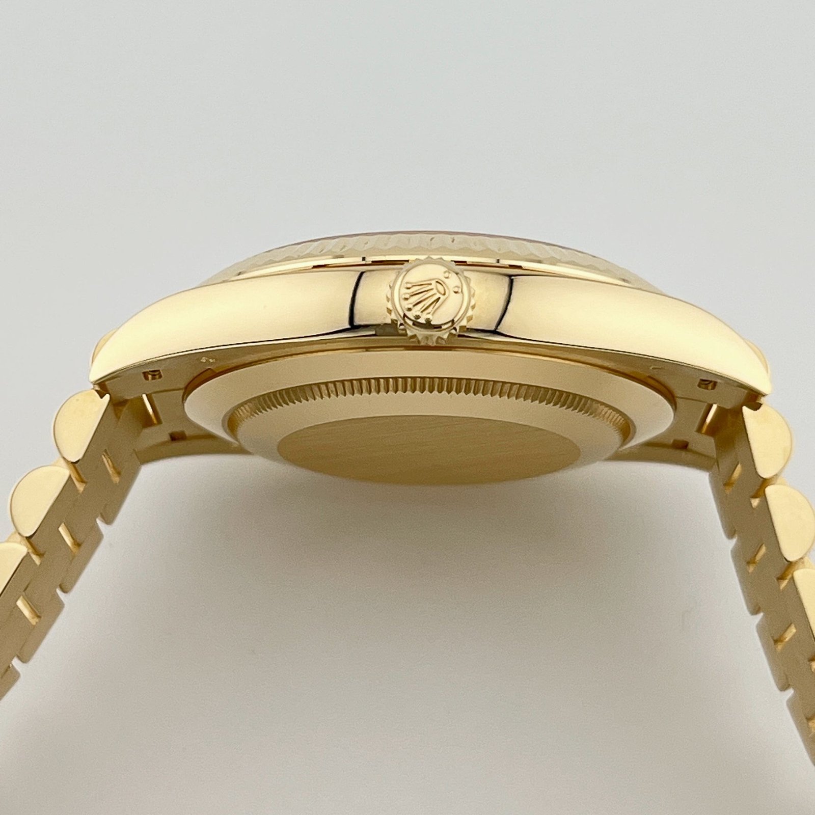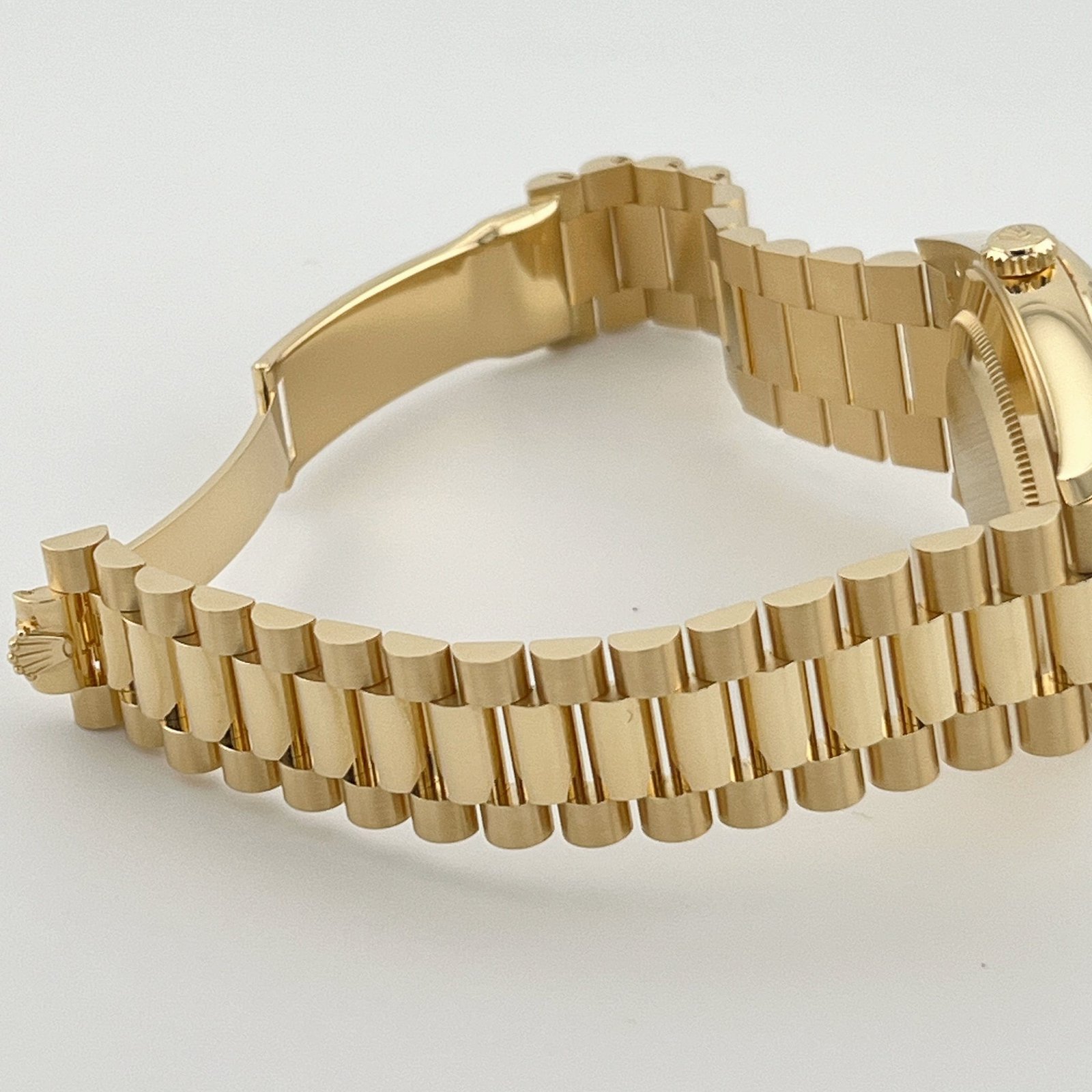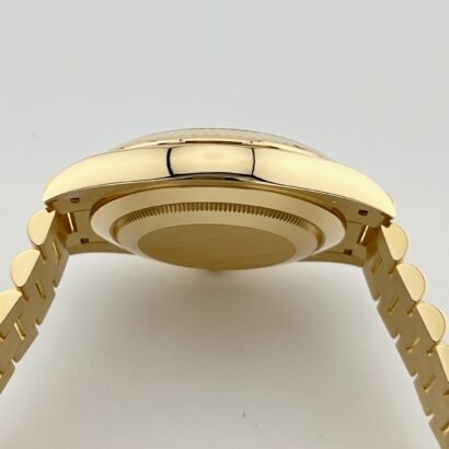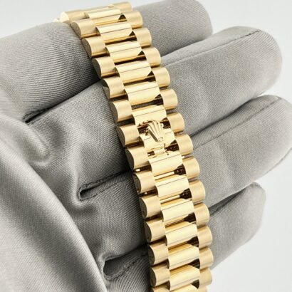 Complementing the exquisite aesthetics is the 18k yellow gold presidential bracelet, featuring semi-circular three-piece links and a concealed Crownclasp. This signature bracelet design not only enhances the comfort and wearability of the watch but also adds to its overall allure, making it one of the most sought-after timepieces to date.
