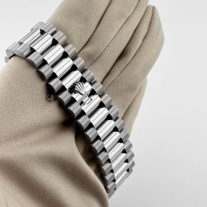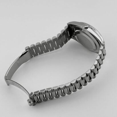The watch is fitted with the prestigious President bracelet, featuring semi-circular three-piece links in 18k white gold. It offers unmatched comfort and is equipped with a concealed Crownclasp and the Easylink extension system for quick micro-adjustments.