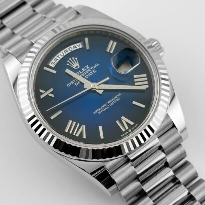 The Rolex Day-Date 228239 Blue Ombré Roman Dial is a statement of status and restraint—ideal for collectors who value both innovation and aesthetic nuance. It represents the height of Rolex’s ability to blend functionality, exclusivity, and visual impact into a timepiece that’s as impressive technically as it is stylistically timeless.
