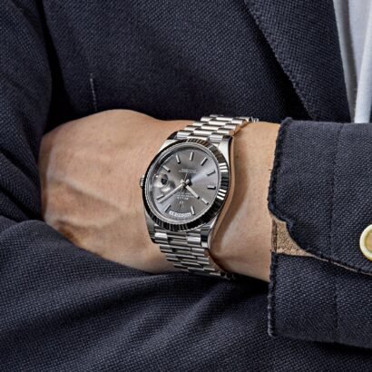Powered by Rolex’s renowned automatic movement, the Day-Date 40 ensures exceptional accuracy and reliability, making it a reliable companion for any occasion. The President bracelet, meticulously crafted from white gold, not only enhances the watch’s overall elegance but also provides unparalleled comfort and durability.