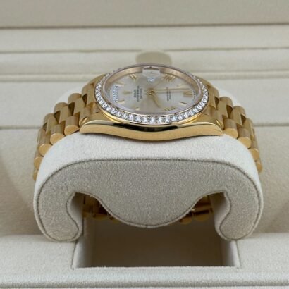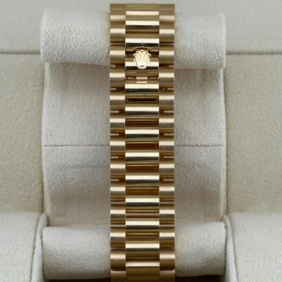 Driven by Rolex’s renowned automatic movement, the Day-Date 40 ensures exceptional accuracy and reliability, making it a trusted companion for every moment. The President bracelet, meticulously crafted from yellow gold, enhances the watch’s overall allure and offers unmatched comfort and durability.